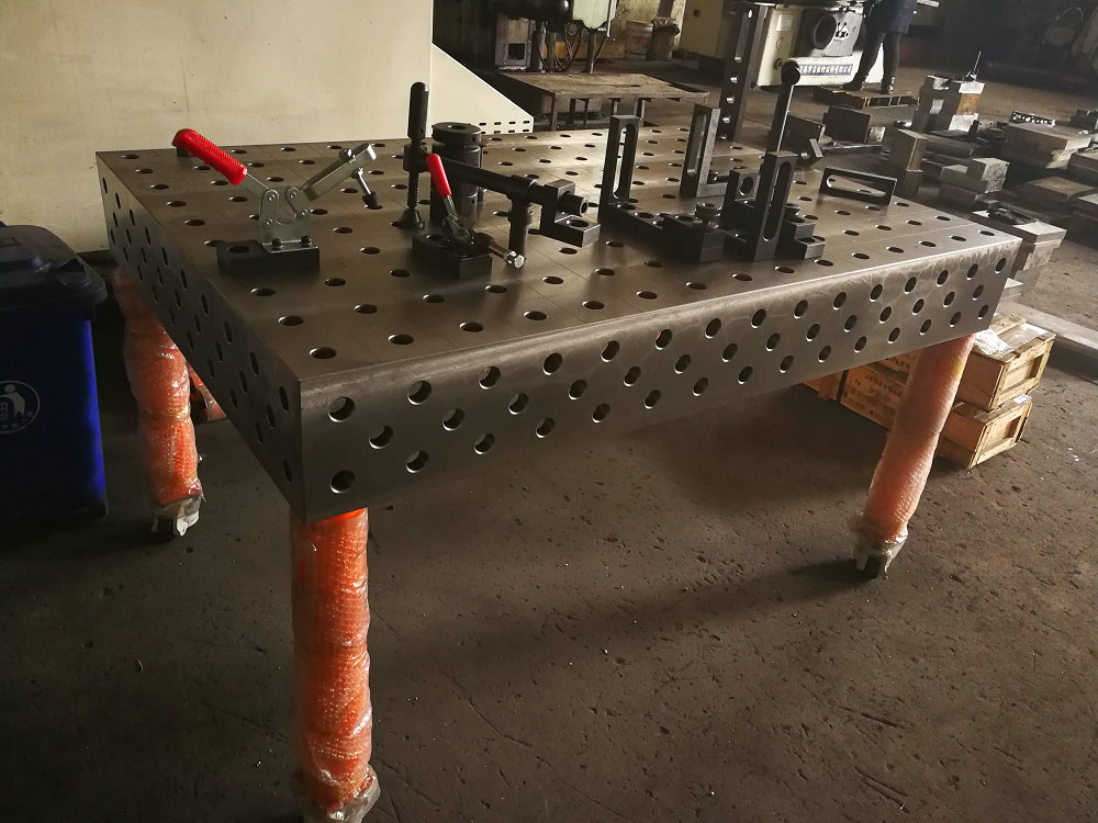 三維柔性焊接工裝平臺代表三個方向一般夾具都是縱向和橫向沒有垂直方向。平臺大面有二個方向,四周邊可用作垂直方向的安裝,從而達到立體組合。